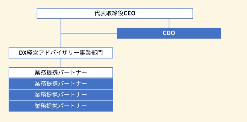 当社のDXへの取組を推進すること、および当社のDXへの取り組みを業務提携パートナー等のステークホルダーへ浸透させることを目的に、代表取締役が最高デジタル責任者(CDO)の職を兼任し、経営戦略や人材戦略とも連動した推進及び啓発活動に取り組みます。